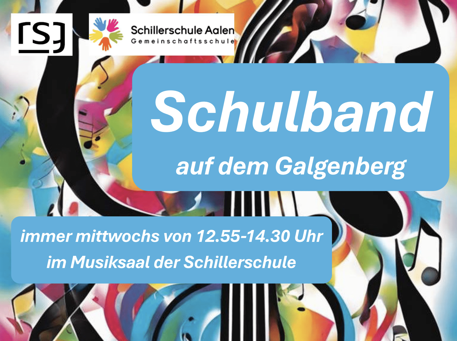 Bandprobe ist immer mittwochs von 12.55 – 14.30 Uhr im Musiksaal der Schillerschule.