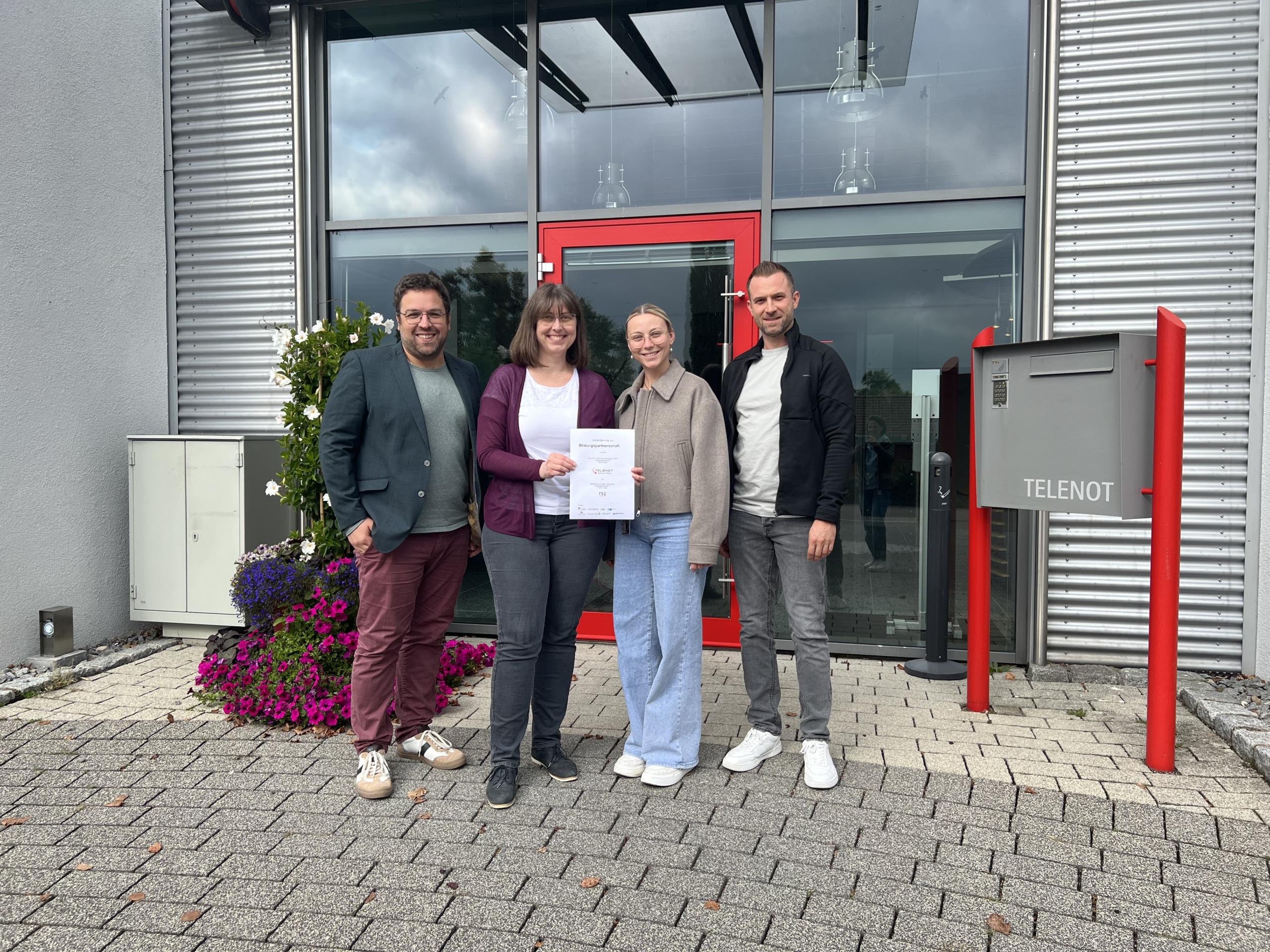 Die RSG ist um eine Bildungspartnerschaft reicher. Am vergangenen Montag wurde in Hammerstadt durch unsere Schulleitung und die Firma TELENOT ELECTRONIC GMBH ein entsprechender Vertrag unterzeichnet. TELENOT ist führender Hersteller für Alarmanlagen und elektronische Sicherheitstechnik, etwa im Bereich Brandschutz oder auch Zutrittskontrolle. Nachdem die Tinte unter den Vertrag gesetzt war, bekamen wir bei einer Führung Einblick in den Standort im Aalener Teilort. Im letzten Schuljahr wurde ausgelotet, wie die Partnerschaft aussehen könnte, nachdem die Firma TELENOT proaktiv über Lisa Sorg und Daniel Bareiß den Kontakt zu uns gesucht hatte. Beiderseitiges Ziel ist es, unseren Schülerinnen und Schülern im Fach Technik eine neue Perspektive zu eröffnen und im Bereich der Berufsorientierung einen zusätzlichen Beitrag zu leisten. Geplant ist, dass noch vor Weihnachten in Klassenstufe 8 eine Unterrichtseinheit durch TELENOT begleitet wird. Dafür kommen auch die aktuellen Auszubildenden mit an die RSG, was die Motivation unserer beiden Technik-Gruppen zusätzlich steigern soll. Wir freuen uns sehr auf die neue Zusammenarbeit und sind gespannt, wie sich die Bildungspartnerschaft in den nächsten Jahren entwickeln wird.