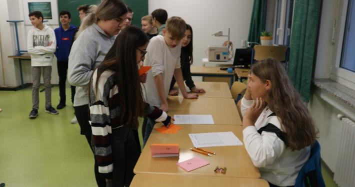 Einzelne Neuner und Zehner stellten mittels einer Präsentation selbst vor, was sie in den letzten acht Wochen erarbeitet hatten. Die beiden 9. Klassen erstellten mit Unterstützung von Radio Fips aus Göppingen eine Radiosendung zum Volkstrauertag. Dabei ging es nicht nur um die inhaltliche Auseinandersetzung mit dem Thema, sondern auch um ein Sprechtraining und sicheres Auftreten bei den Interviews, die für die Sendung mit verschiedenen Personen geführt wurde. Die Federführung des Projekts hatte Herr Müller inne, der beide 9. Klassen in Geschichte unterrichtet.